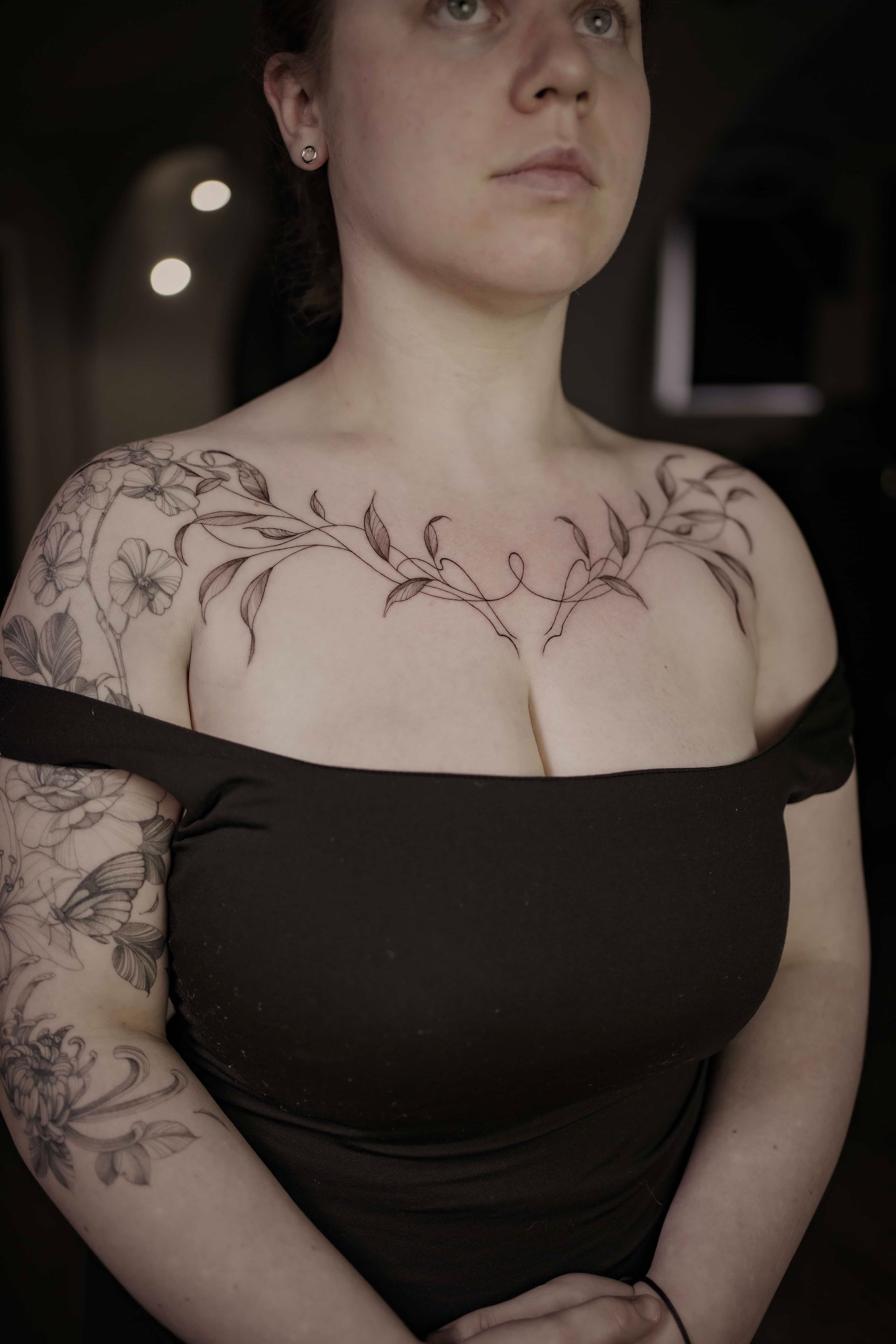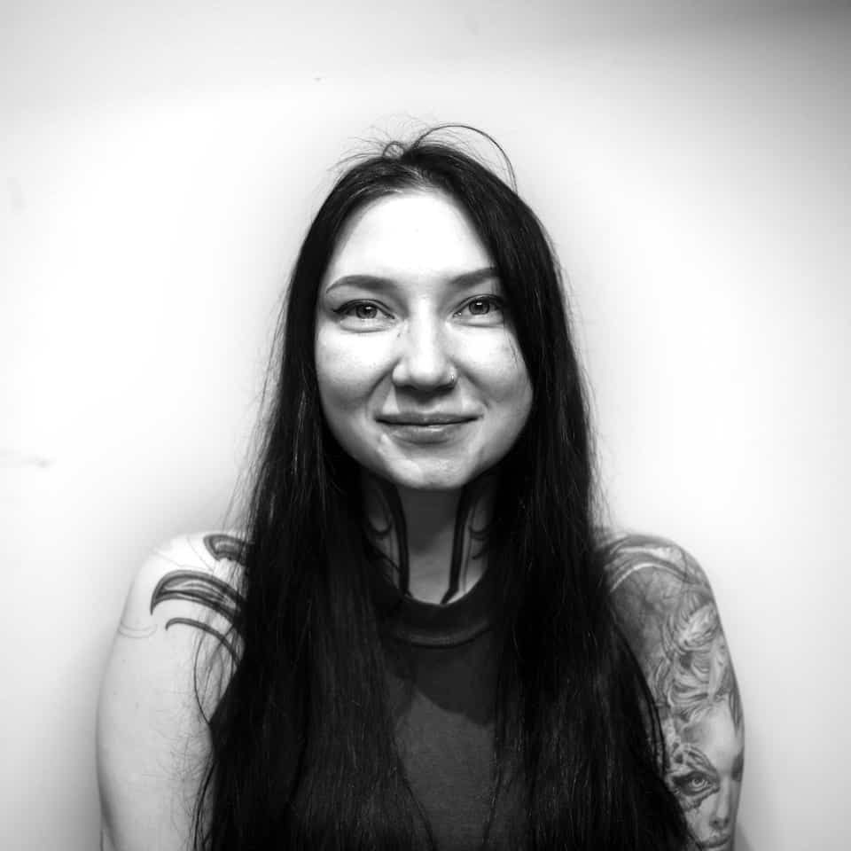 Iryna began tattooing with a passion for clean detail and beautiful design. Her work features delicate floral ornaments, meaningful fine line pieces, and crisp black and grey border work.
