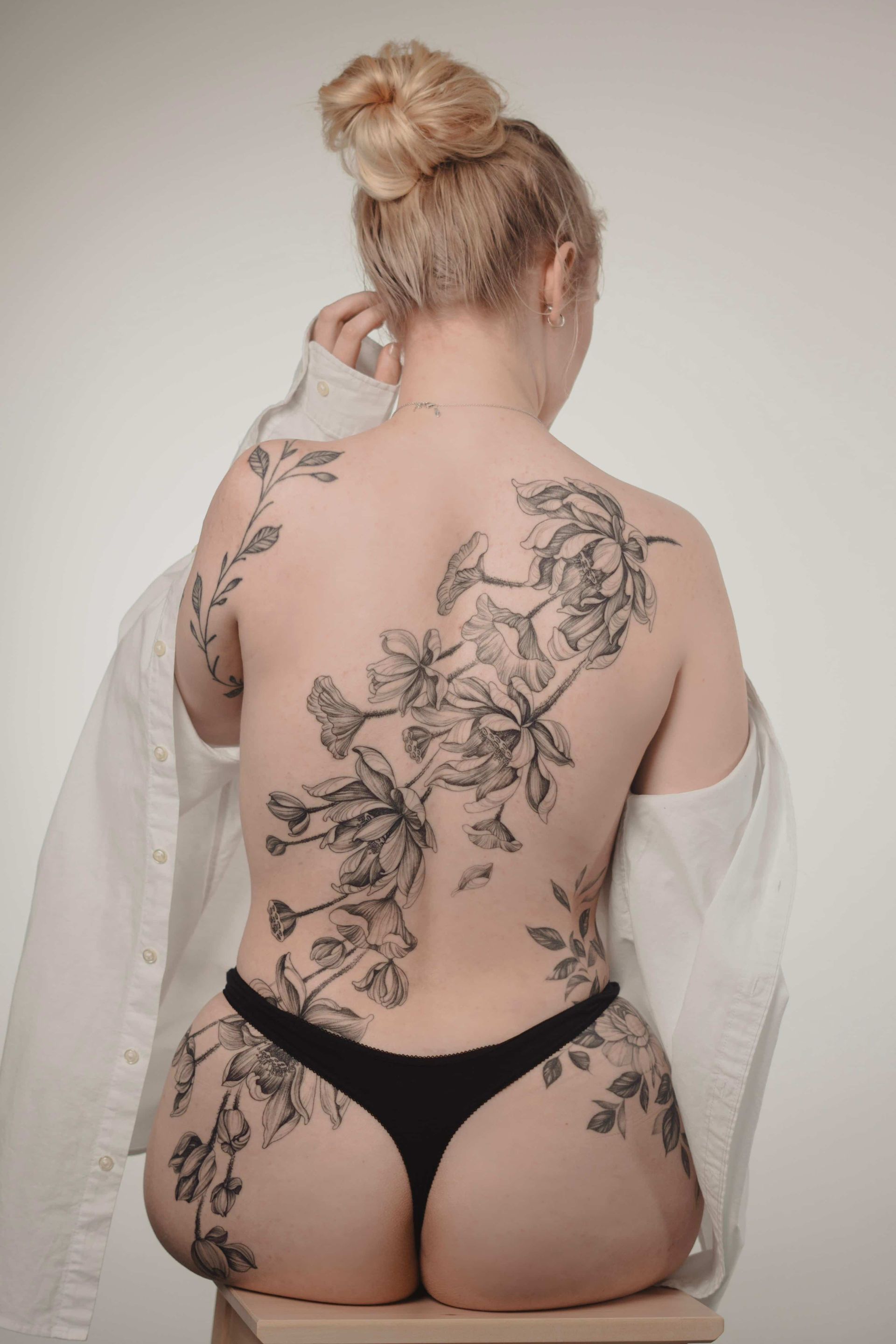 She also specialises in scar cover-ups, including post-surgery scars, creating designs that complement and blend beautifully with the skin.